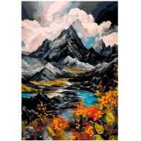 Sukeldu looduse vägevusse ja rahusse selle numbrimaaliga. Majesteetlikud mäed, sillerdav järv ja leekivad sügisvärvid loovad pildi, mis kõnetab. Iga pintslitõmme justkui kajab — see on tippude kaja, mis puudutab hinge. Sobib neile, kes hindavad looduse suurust ja soovivad seda ise luua.