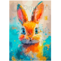 Maalimine numbrite järgi "Vikerkaarejänku" kutsub teid fantaasia ja kirkaste värvide maailma. See armas karvane tegelane põhjatute siniste silmadega ärkab justkui ellu mitmevärviliste akvarellitilkade ja -pritsmete keskel. Karvastiku soojad oranžid ja kollased toonid sulanduvad harmooniliselt värskendava türkiissinise taustaga, luues rõõmsa meeleolu. Vabas kunstilises stiilis töötamine võimaldab nautida protsessi ja luua oma koju stiilse moodsa sisekujunduselemendi.