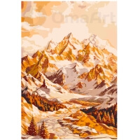 "Auksinės viršūnės" – tai didingas paveikslas pagal skaičius, vaizduojantis kalnų peizažą, apšviestą šilta, auksine saulėtekio ar saulėlydžio šviesa. Snieguotos viršūnės švyti spindinčiais geltonais ir oranžiniais atspalviais, puikiai kontrastuojančiais su rausvai oranžine medžių lapija slėniuose žemiau. Per peizažą teka vingiuojanti upė ar upelis, suteikiantis kompozicijai gilumo. Dangus yra švelnus ir debesuotas, atspindintis sodrius, šiltus kalnų tonus. Šis paveikslas perteikia Alpių rudens didybę ir ramią grožį, sukeldamas ramybės ir pagarbos jausmą. Tai bus puikus priedas prie bet kokio interjero, įnešantis į namus ramybės ir gamtos grožio.