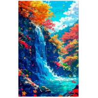 Tapyba pagal skaičius „Rudens krioklys“ perkelia jus į magišką nepaliestos gamtos kampelį. Sižetas pavergia galingu kontrastu: krištolo skaidrumo, giliai mėlynos vandens srovės dūžta į akmenis, o virš jų ryškia ugnimi liepsnoja rudeniniai klevų lapai. Lazurito, oranžinės ir purpurinės spalvų derinys sukuria neįtikėtinai dinamišką ir gyvą kompoziciją. Šio kraštovaizdžio tapymas suteiks ramybės pojūtį ir leis sukurti tikrą šedevrą, kupiną kalnų oro gaivos ir auksinio rudens spalvų.