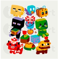 "Pikseļu radības kuba pasaulē" ir spilgta un jautra glezna pēc numuriem, kas jūs pārvedīs uz daudziem pazīstamo un iemīļoto Minecraft pasauli. Šajā audeklā apkopotas burvīgas populāru mobu versijas, piemēram, Endermens, Grīpers, mīlīgs aksolotls, bite, sēņu govs un citi ikoniski varoņi un priekšmeti, kas visi veidoti atpazīstamā bloku stilā. Katrs gleznas elements ir caurstrāvots ar piedzīvojumu un radošuma garu, aicinot fanus ienirt šīs unikālās spēļu paneļa radīšanas procesā. Ideāli piemērota geimera istabas dekorēšanai vai kā dāvana pikseļu estētikas un bezgalīgo iespēju cienītājam!