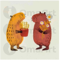 Картина по номерам «Дружба двух капибар» наполнена теплом и добротой. На нежном светлом фоне изображены две очаровательные капибары, которые делятся друг с другом радостью: одна держит букет ромашек, а другая - растение в горшочке. Лаконичный и современный стиль иллюстрации с мягкими оттенками рыжего и коричневого делает процесс раскрашивания легким и приятным. Этот сюжет станет прекрасным украшением детской комнаты или душевным подарком для любителей самых дружелюбных животных в мире.