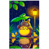 Картина по номерам «Под зеленым листком» погружает в атмосферу доброй сказки, вдохновленной миром классического аниме. Большой пушистый хранитель леса терпеливо ждет под дождем, укрываясь огромным листом, в компании маленьких утят и любопытного лягушонка. Теплый свет уличного фонаря отражается в лужах, создавая уютный контраст с синими каплями ночного дождя. Этот милый и трогательный сюжет наполнит ваш дом добротой и станет идеальным проектом для рисования всей семьей.